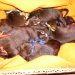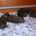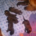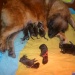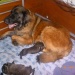 Eindelijk was het zaterdag 18 febr zover. Sky was begonnen met de bevalling. Helaas duurde het te lang nadat haar vlies gebroken was voor de eerste pup geboren werd dus zijn we voor de zekerheid maar even met Sky naar de dierenarts gegaan. De dierenarts maakte een echo en zag dat de eerste pups gewoon in leven waren. Gelukkg! Ze kreeg een weeopwekkende injectie en we gingen weer naar huis. Thuisgekomen werd al snel de eerste pup geboren. Een reu van maar liefst 630 gram, voor de eerste pup wel een heel erg grote. Nadat de weg was vrij gemaakt werden al snel de tweede en de derde geboren, beide ook weer reuen. Daarna kwamen er 3 teefjes en toen hielden de weeen weer op. In overleg met de dierenarts hebben we Sky toen nog een weeopwekker gegeven. Uiteindelijk kwamen toen nog 2 reutjes. Het leek erop dat ze toen toch echt klaar was. De rust keerde terug en we maakten ons klaar om te gaan slapen. Tot onze vebazing werd er toen toch nog een teefje geboren. Later s'nachts werdt er ook nog een teefje geboren. Zij was helaas dood en woog ook maar 250 gram. Ik ben beneden bij Sky en de pups gebleven. Ze was rustig en heel lief voor haar puppy's. De volgende ochtend werd ze weer erg onrustig en liep veel te hijgen. Ze ging staan en plots lag er een pup op de bodem van de werpkist. Een teefje van 350 gram en gelukkig in leven. Mooi aantal, 5 reutjes en 5 teefjes in leven. S'middags, alles was helemaal rustig, staat Sky opeens op en werpt nog een pup, helaas was dit teefje niet meer in leven. We zijn toen nog even naar de dierenarts gegaan omdat we nu toch echt wilde weten of er nog meer pups zouden komen. Op de echo was verder geen pup meer te zien, maar de baarmoeder was nog niet echt schoon. Op advies van de dierenarts hebben we haar daar nog wat voor gegeven. We zijn hartstikke blij met de pups, maar wel jammer dat er twee doodgeboren zijn. Het waren beide de lichtste uit het nest, de natuur maakt blijkbaar zelf al zijn selectie.