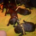 Onze nummer 10 die als laatste levende pup geboren werd, weliswaar een dag later dan de rest, had ongelijke kansen. Als laatste geboren met een gewicht van 350 gram, had die een slechte start. Op zijn geboortedag wilde die ons al weer verlaten, maar kregen we hem toch weer stabiel met een beetje glucose. Zo werd die kleine pup de troetel en het zorgenkindje, we hielden hem goed in de gaten. En het ging wonderwel goed met hem, hj was evenals de rest behoorlijk fel. Iedere dag kwam die in gewicht aan, tot afgelopen woensdag. Bij het wegen bleek die 40 gram afgevallen. Alle alarmbellen gingen rinkelen. Een pup mag niet afvallen. Al snel daarna bleek dat die steeds moeilijker aan de tepel bleef hangen, en tekort zuigkracht vertoonde. De pup kreeg glucose om hem een oppepper te geven. Dit hielp even, hij werd weer wat feller en het leek te gaan zoals de eerste keer. Tot die woensdagavond een tweede dip kreeg, waar die ook niet meer uitkwam met glucose. Ook het bijvoeden ging nu niet meer goed, zijn zuigkracht was verdwenen. We hebben daarna de pup nog kunstmatig gevoed, maar uiteindelijk overleed die op donderdagmiddag. Bij de fam prikten de tranen. Voor ons gevoel een schaduw over het nest, je gaat toch voor de volle 100 %.