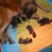 De pups zijn inmiddels ruim vier weken oud, en zijn de kritische fase wel voorbij. Ze lopen inmiddels door het gehele huis en liggen al buiten in het zonnetje te slapen. Wat gaat dat toch ongelooflijk snel. Je begint nu ook een beetje de aard van iedere pup te ontdekken. Zo hebben we de zeurpiet, het dominantje, de knuffel, de rustige. Ieder krijgt zijn eigen karakter, maar allemaal zijn ze even lief. Kleine beertjes zijn het.