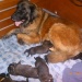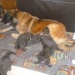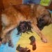 Alle pups hadden met 8 1\2 week een baas gevonden, dat liep eigenlijk prima. De laatste twee reuen die nog over waren na acht weken waren binnen een halve week weg, en hebben prima baasjes gevonden. Een ging er naar Belgie en de ander ging gelijk naar het bejaardentehuis. Daar gaat die verder als knuffelhond door het leven. Daar had die ook echt zo een koppie voor. Een teefje zou vanwege familieomstandigheden eerst tot eind mei bij ons blijven, maar werd vanwege die familieomstandigheden later toch definitief afgezegd. Deze teef zit nu nog bij ons. Het vreemde is dat er voor teefjes in eerste instantie volop gebeld werdt, we hebben zelfs tot zesmaal toe af moeten zeggen, en nu hoor je even niets. Terwijl dit toch een hele mooie zware teef is. Het is Aurora, en hoewel ze in eerste instantie niet de zwaarste uit het nest was, is ze dat wel geworden. Ze heeft een aanzienlijk zwaardere bouw dan de pup die we zelf houden, en we hebben zelfs nog even in twijfel gestaan.....Maar het koppie van onze eigen hond kan je zo lief aankijken dat we toch maar besloten hebben om haar te houden. Dus als er nog mensen zijn die een goed nest weten voor een goede pup, dan horen we dat graag. Niet dat die ons al in de weg zit, maar het is voor de pup ook beter om zo snel mogelijk een nieuw thuis te hebben.